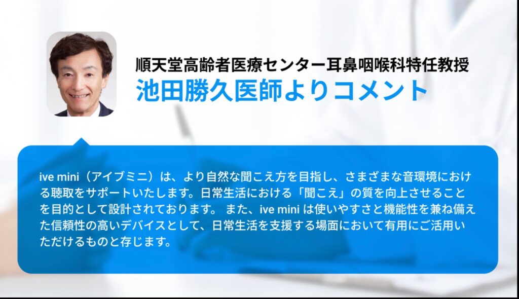 どうやらこのアイブミニという集音器が、まさに初めての集音器として選ばれているとのこと。