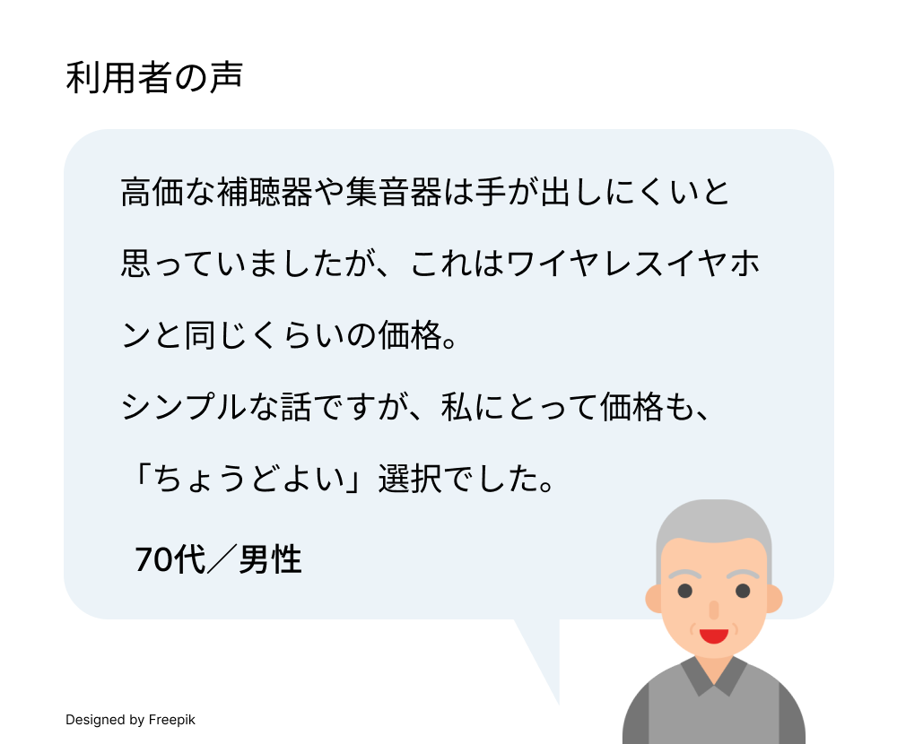 「補聴器を検討していましたが、私にはこれで十分でした」