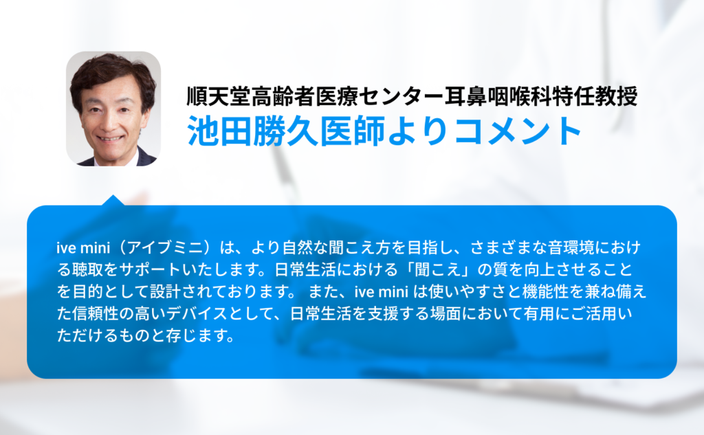 Olive Airは、単なる家電ではありません。 順天堂大学高齢者医療センター耳鼻咽喉科・特任教授を務める池田勝久医師からも紹介いただいている製品です。
